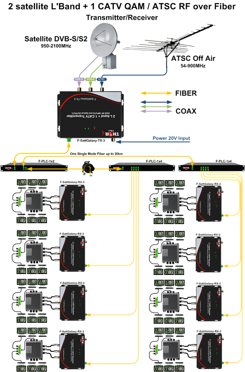 This system is ideal for point-to-point transport applications or point-to-multipoint setups up to 1×32, making it perfect for MDU applications. It is a great solution for DirectTV or Dish Network over fiber distribution and works seamlessly with any RF terrestrial antenna and SWiM switch.