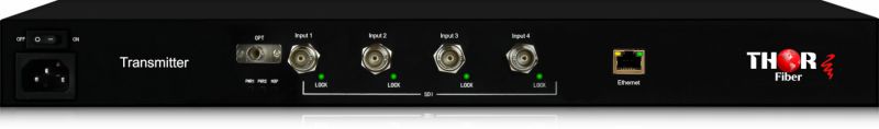 The Thor 4 Ch SD/HD 3G-SDI with Gigabit Ethernet Over Single Fiber is a versatile solution designed for transmitting 4 unique 3G SDI video signals and bi-directional Gigabit Ethernet over a single-mode fiber strand. It supports distances of up to 20, 40, 80, or 120 km, depending on the model, making it ideal for long-distance, real-time applications such as live broadcasts or video transmissions.