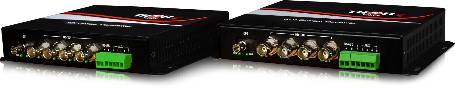 The Thor 4 SDI / HDSDI Over 1 Fiber MINI Extender is a versatile solution for transporting digital video over fiber. This transmitter and receiver set supports four full HD-SDI, SD-SDI, or DVB-ASI channels, providing a reliable way to extend video signals over long distances.