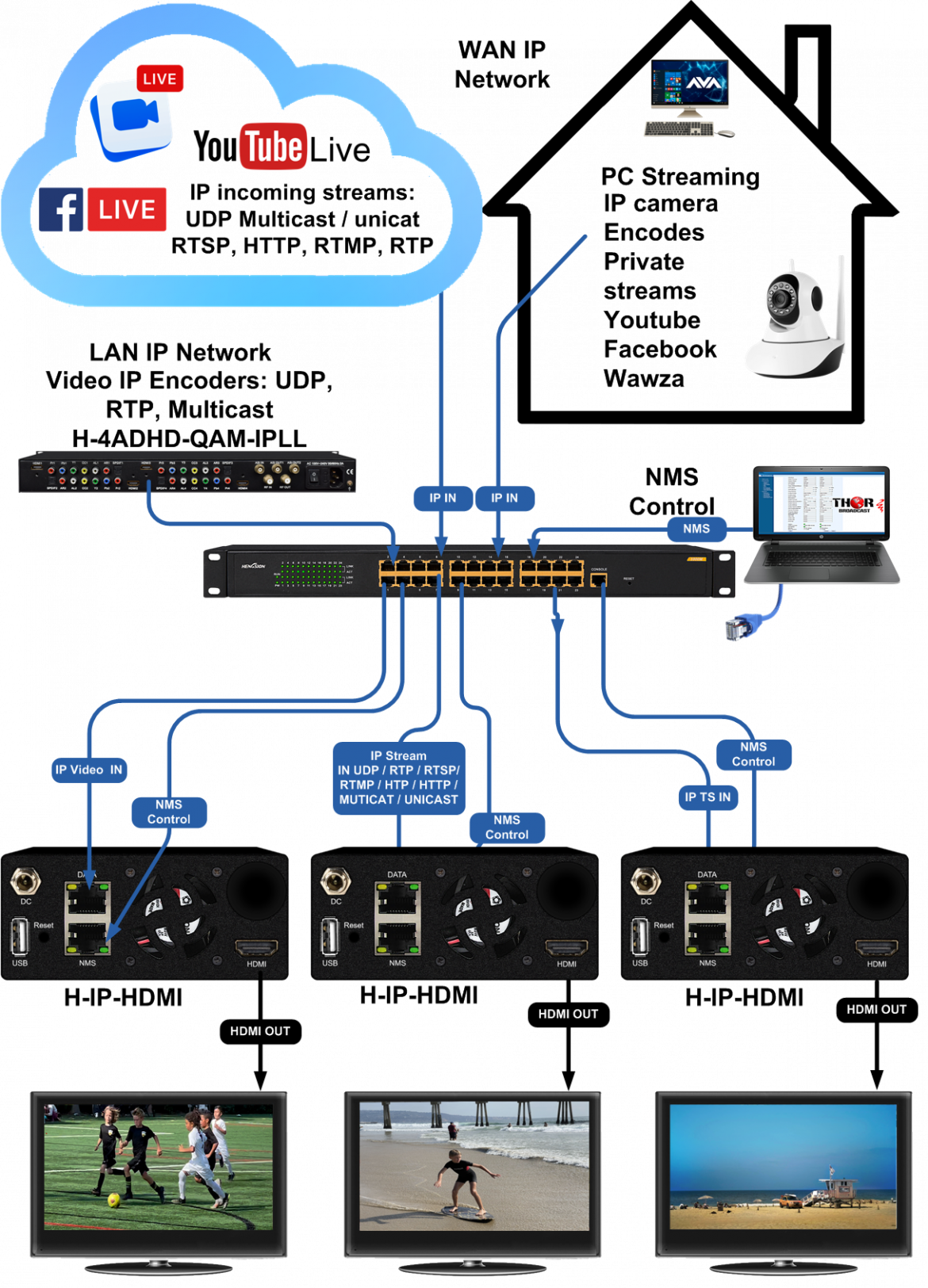 Digital signage is an effective medium for delivering information, alerts, advertisements, and entertainment across industries. The H-IP-HDMI decoder can transform existing televisions into dynamic displays, offering clients and visitors engaging visual content that can be updated and customized remotely.