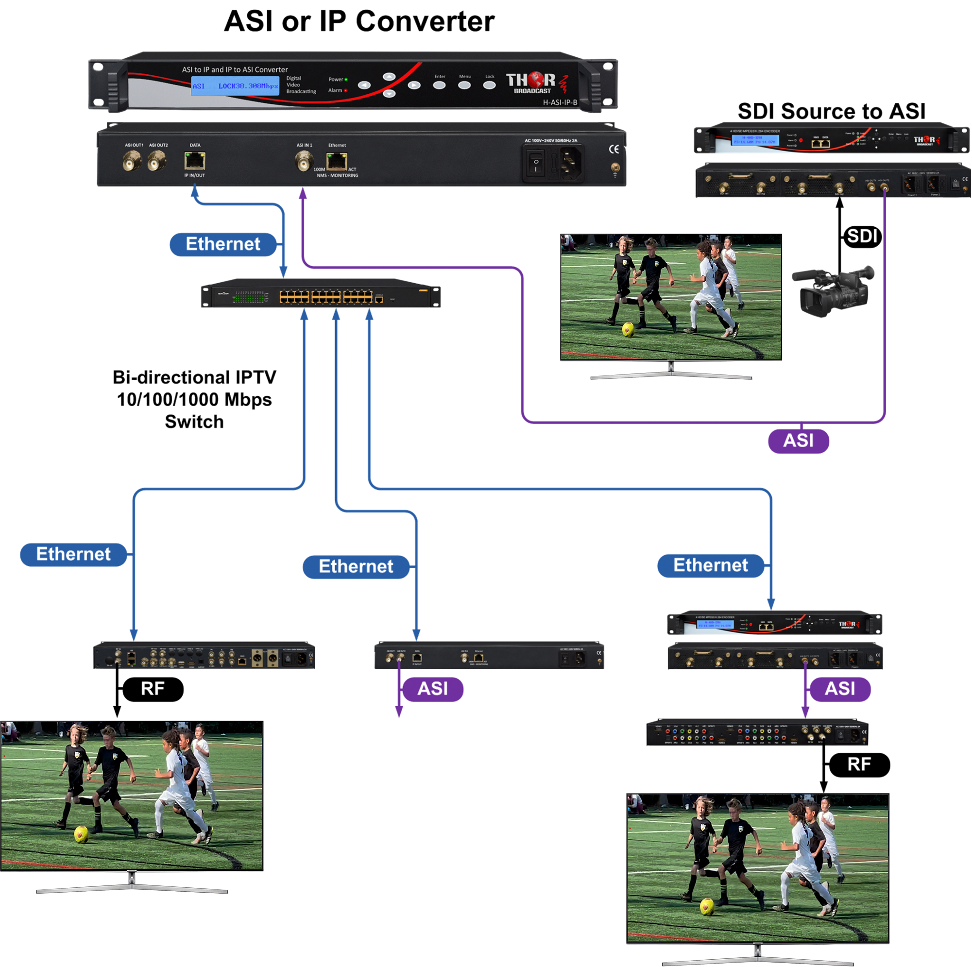 Thor Broadcast’s technology ensures high performance in transferring MPEG transport streams through IP networks. The H-1 ASI to IP system simplifies the traditionally complex and costly setup of DVB-ASI video transport links between broadcasting locations. By acting as an ASI over IP encapsulator, it allows MPEG transport streams to be transmitted over packet-based networks, often utilizing wireless equipment for added flexibility.