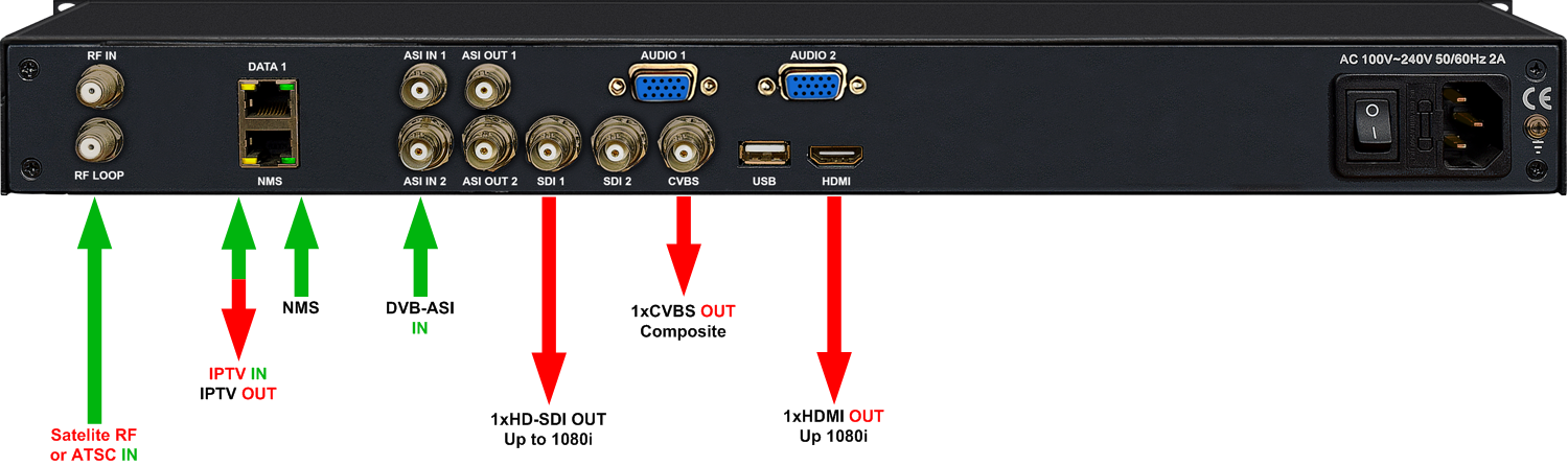 - Decode Satellite DVB-S/S2 RF to SDI, HDMI, CVBS, YPbPr Video and Audio