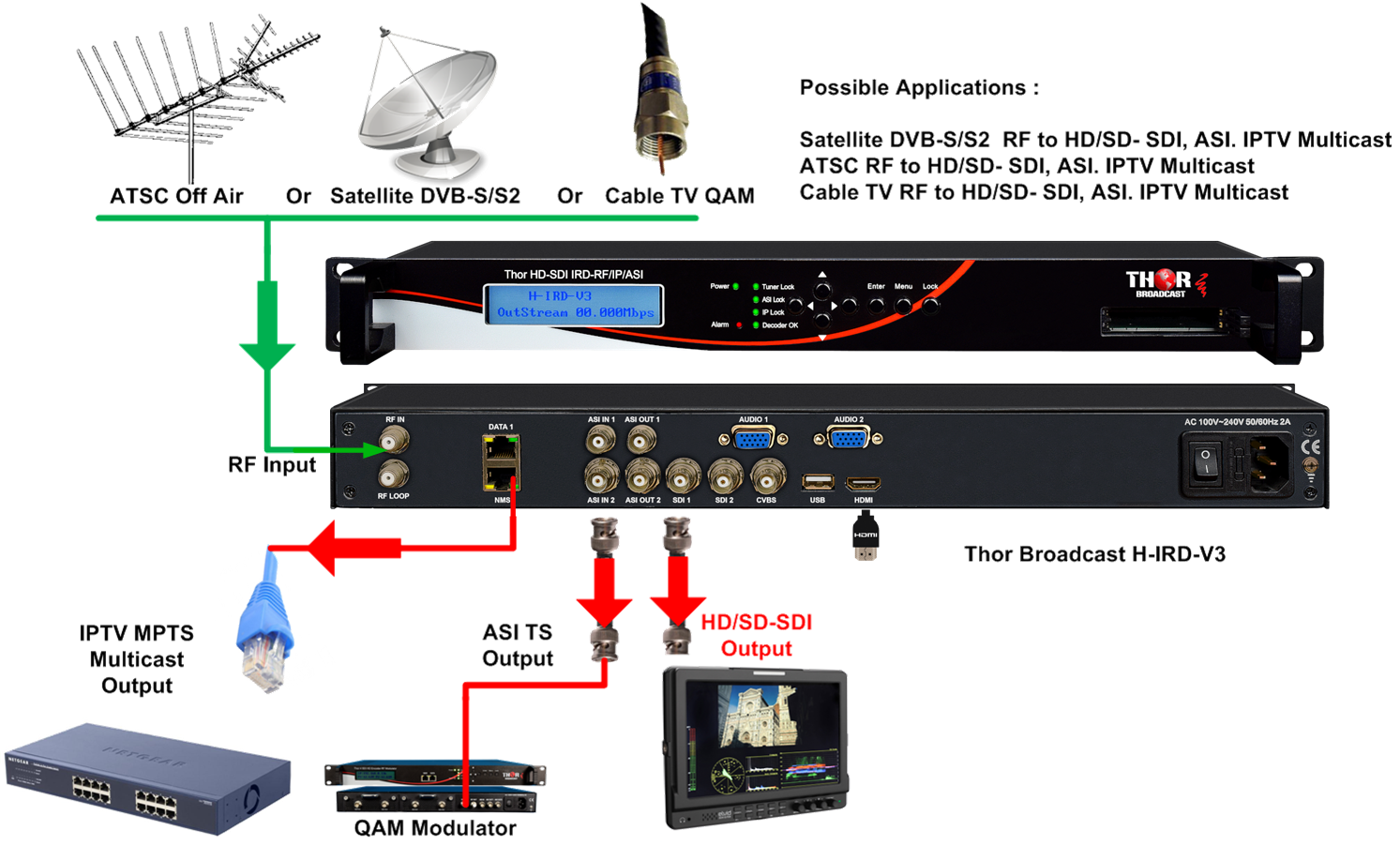 Thor IRD – Satellite or ATSC Decoder to SDI, IP, ASI, Closed Captions