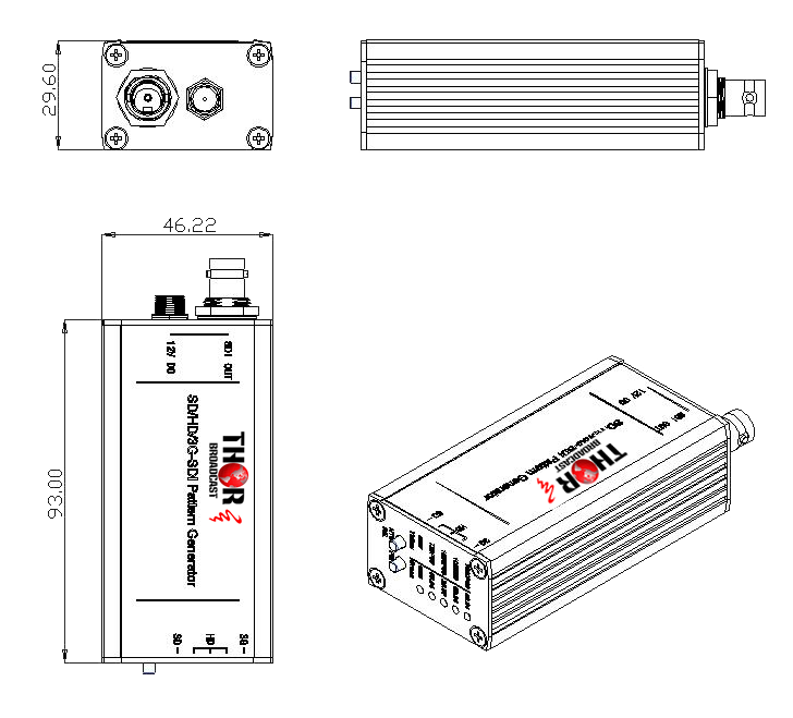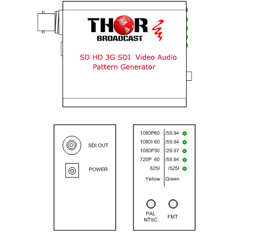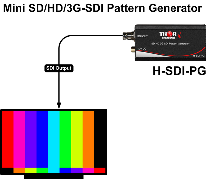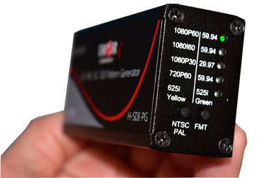 The H-SDI-PG is a versatile SD/HD/3G-SDI pattern generator designed for seamless testing and setup of SDI over Fiber systems. It supports color bar patterns with a moving circle and embedded 1 KHz audio at 2970Mb/s, 1485Mb/s, and 270Mb/s. This portable device simplifies the process of checking fiber-line and SDI gear readiness by sending test signals to a monitor.