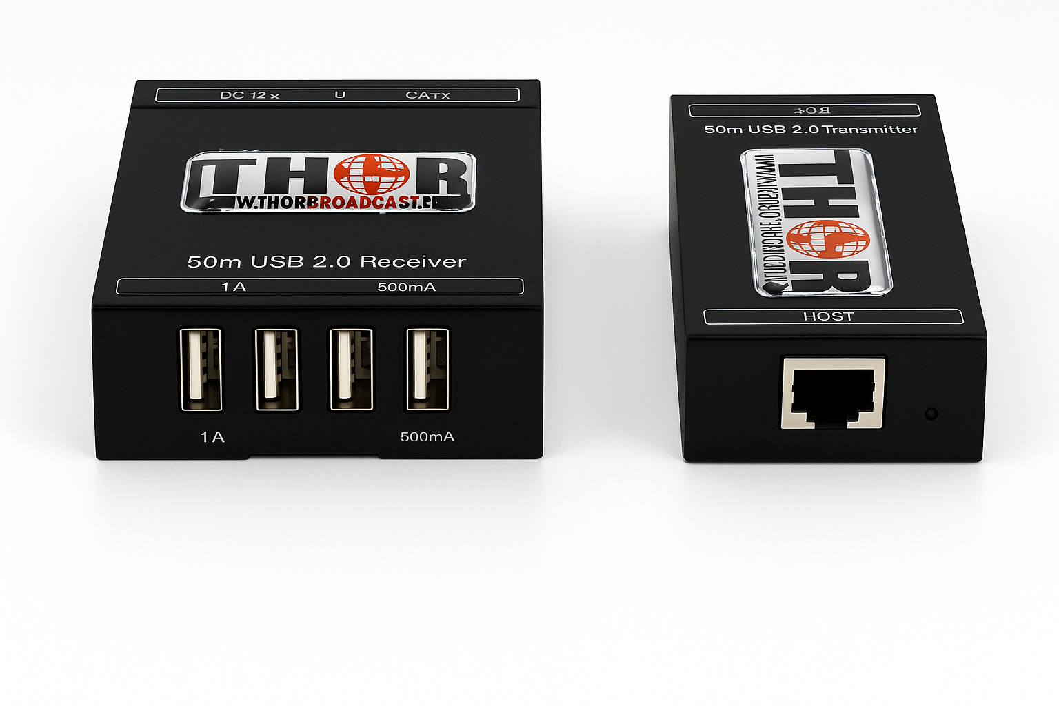 Extend your USB 2.0 connectivity up to 50 meters with the Thor USB 2.0 Over Ethernet Extender. This plug-and-play solution features a 4-port USB hub receiver, making it ideal for AV setups, KVM configurations, and remote USB device installations.